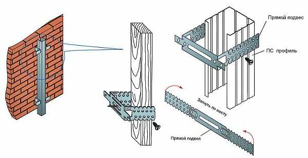 Крепления фиксируются на стенах с помощью дюбелей с шурупами, а профили к креплениям присоединяются посредством «блошек» — маленьких саморезов. Кстати, шурупы и дюбеля лучше покупать отдельно. Дюбеля не должны быть «ударными», особенно если стены состоят из пустотных бетонных блоков.