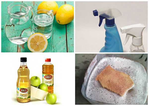 - В литр воды добавляют 1 ч. л. моющего средства для посуды или обычного жидкого мыла. Такой состав оставляют для воздействия на 15–20 минут, затем вымывают чистой влажной губкой.