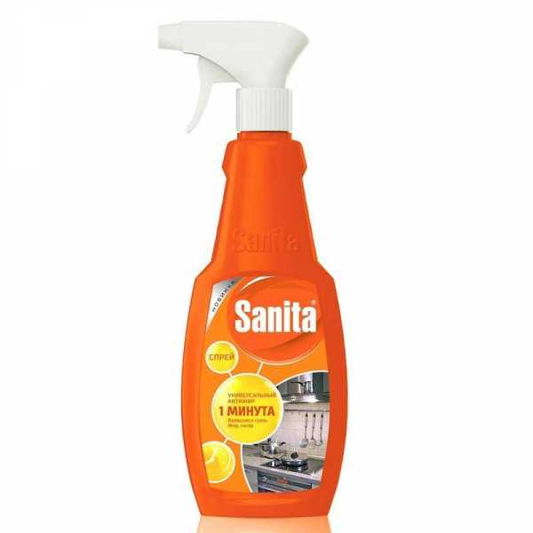 - SANITA. Выпускается во флаконе с пульверизатором. Жидкость оставляют для воздействия на 10–12 минут. Жир убирается легко, без трения.