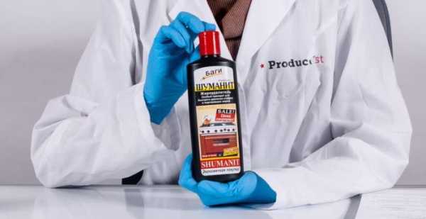 - Шуманит. Буквально за 5 минут растворяет даже самые старые пятна на керамическом покрытии. Удобен в применении, поскольку выпускается в виде спрея. Единственный недостаток — цена (500 руб).