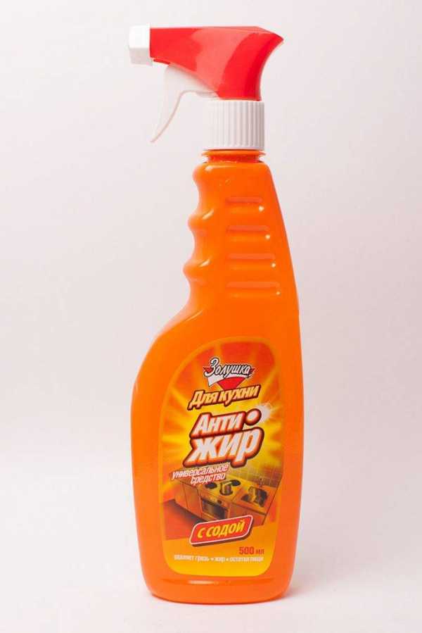 - Антижир от Золушки. Применяют для любых поверхностей. Наносят с помощью пульверизатора и оставляют для воздействия на 10 минут, затем покрытие обрабатывают губкой и смывают водой.