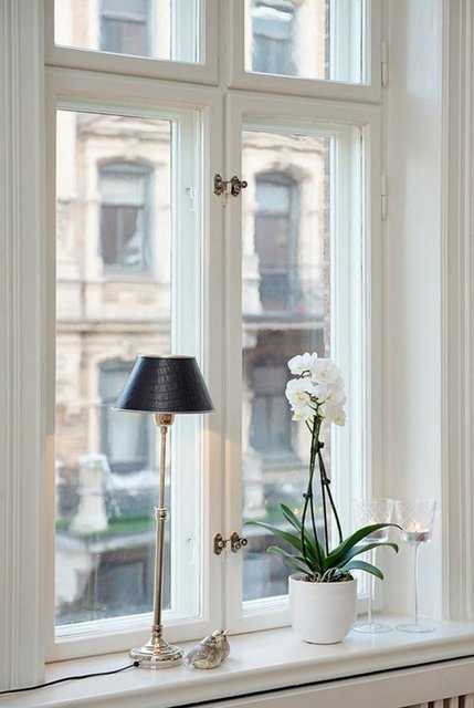 Простой декор окна и подоконника: торшер и цветыТеперь давайте поговорим более подробно о наименее затратном варианте украшения подоконника.