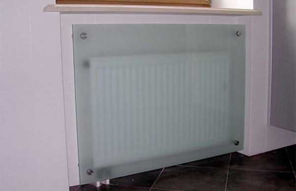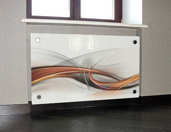 Второй способ – стеклянный экран с толстым огнеупорным стеклом. Добавьте фотопечать или красивые витражные узоры, чтобы украсить отопительный прибор. Процесс его установки не отличается сложностью. Имеются специальные винтовые держатели и эластичные прокладки для защиты поверхности стекла от винтов. Проделав несколько отверстий в экране, стекло прикрепляем к стене при помощи винтов. Но стоимость подобного экрана достаточно велика, поэтому позволить себе его может далеко не каждый.