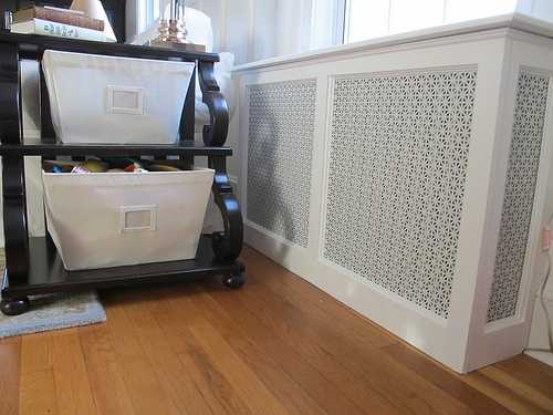 — Еще один метод, как замаскировать батарею в помещении, является установка деревянного экрана. Выполнить такую модель, маскирующую радиатор в доме, может мастер по дереву на заказ. Идеальным вариантом будет выполнение экрана, по стилю и форме напоминающего мебель в комнате.
