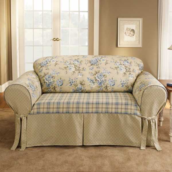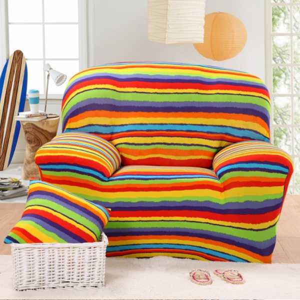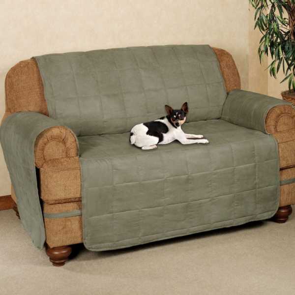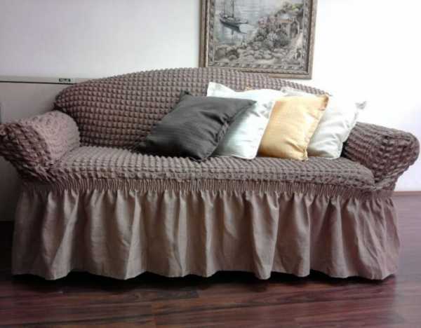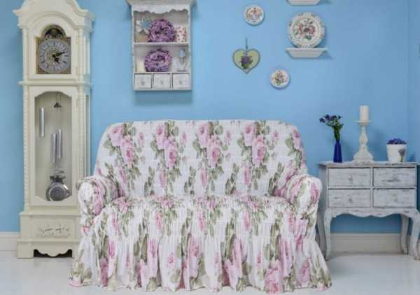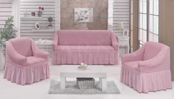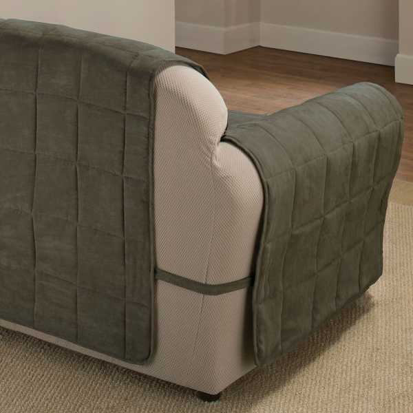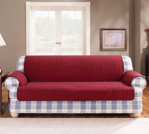 Если предмет мебели стоит по центру комнаты, то нужно рассматривать модели, которые смогут закрыть и спинку. Очень удобно наличие резинок, предотвращающих сползание покрывала.