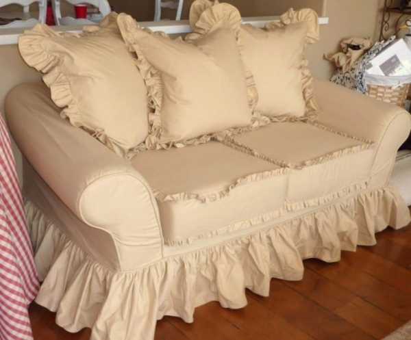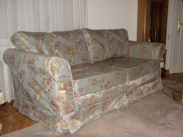 Обычно их заказывают или делают самостоятельно. Существует цельнокроеные, а также составные чехлы. Иногда тканью покрывают только какую-то часть мебели, а не всю площадь.