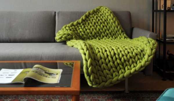 Оригинальная накидка на диван, связанная из гигантской пряжи