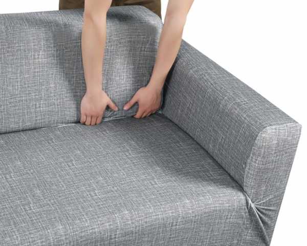Чаще всего чехлы для угловых конструкций изготавливают из эластичных тканей, поддающихся растягиванию (еврочехлы), что позволяет подогнать изделие под размер мебели. Процесс надевания чехла достаточно прост и занимает всего несколько этапов: