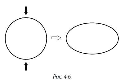 Вариант второй. Круг под давлением среды вынужден трансформироваться в овал, а шар – в эллипсоид. Так сказать, отчасти вынужденная, но уже необратимая эволюция строго центричной фигуры (рис. 4.6). Эту замечательную мысль автору подсказал его многолетний товарищ и коллега Ярослав Кореневский. Спасибо. Если круг сдавливать – он вытянется в овал. И тогда у него появится динамика. Ухода, поиска, развития.