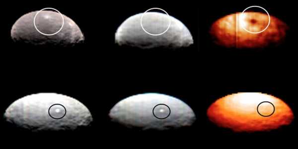 Многочисленные исследователи, астрономы и любители, наблюдают за миссией космического корабля Dawn и постоянно изучают изображения карликовой планеты. По данным NASA, точная природа белых пятен до сих пор не раскрыта, а работа миссии по определению геологической составляющей карликовой планеты начнется только 6 июня, когда космический аппарат выйдет на орбиту 4400 километров. Тем не менее в социальных сетях активно обсуждается различные версии происхождения пятен, начиная от версии специалистов NASA, предполагающих, что это лед, заканчивая версиями никогда не унывающих уфологов склонных полагать, что это стеклянные купола или металлические объекты.