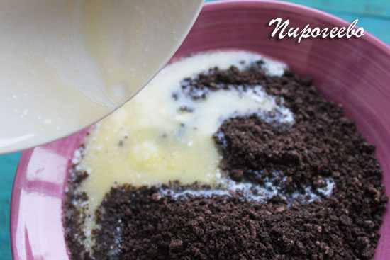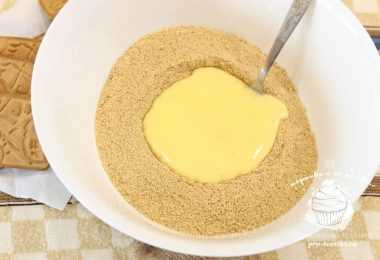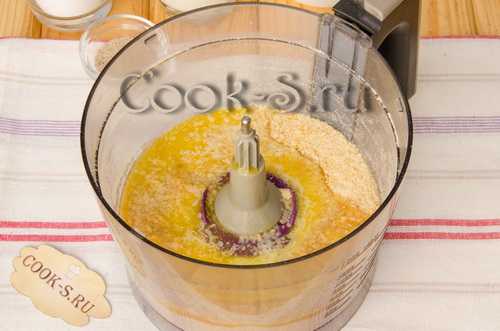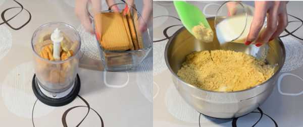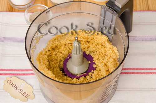 1. Печенье измельчить в блендере до состояния крошки, соединить его с мягким сливочным маслом.
