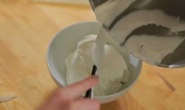 Взбиваем сливки до получения густого крема. В данном случае также важно не переусердствовать, иначе сливки можно «перебить», и они превратятся в сладкое масло.