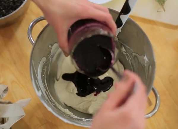 6. Всыпать в творожный крем смородину (выбранную вами ягоду по вкусу), измельчить теперь все вместе с ягодой (не забыть оставить целые ягодки для украшения).