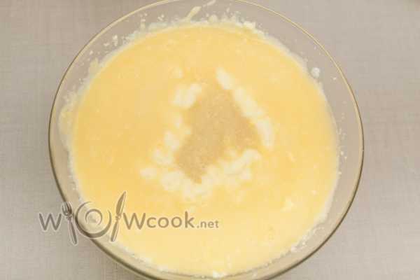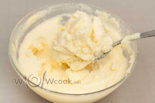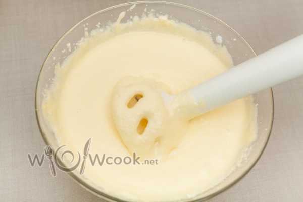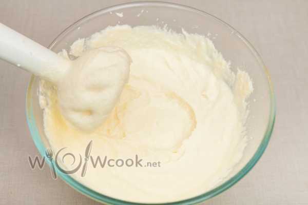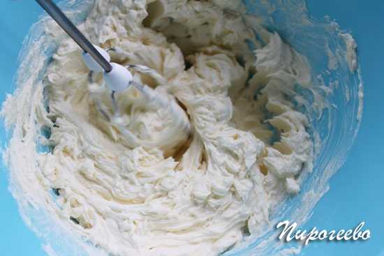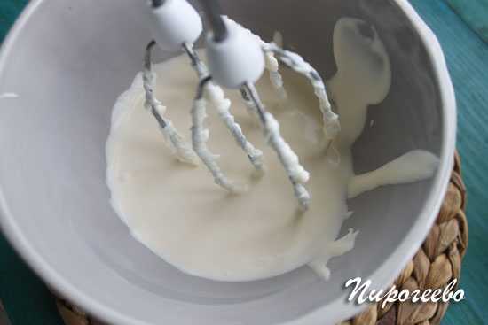 Используйте миксер для однородного перемешивания, но включайте небольшую скорость, чтобы не перевзбить смесь.