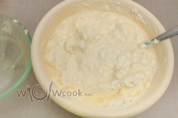 Аккуратно перемешиваем, масса должна получиться очень легкой. Откладываем её в сторону.