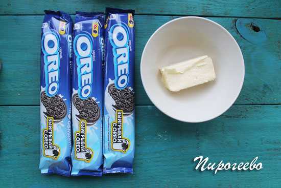 - Печенье Орео — 220 г ( примерно 30 шт) и еще немного для декора