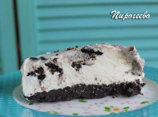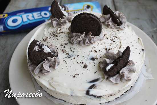 Особенность печенья Орео в том, что оно не размокает от соприкосновения с кремом, остается хрустящим во рту. Остывший чизкейк удобно нарезать на порции, он не разваливается, сохраняет форму.