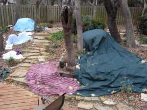 Некоторые растения должны оставаться в тепле, даже когда температура падает. Вы можете обернуть их в старые одеяла, чтобы защитить в течение зимы.