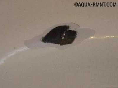 - Оцените состояние эмалевого покрытия. Если на нём появились трещины и сколы, поверхность стала шершавой, а цвет стал ржаво-коричневый, то ванну можно покрыть эмалью или акрилом заново. Если потрескалась не только эмаль, но и корпус, либо образовались сколы на месте слива, ванну придется заменить на новую.
