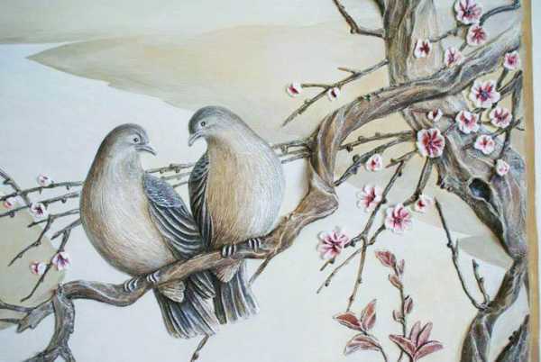 Не составляет сложности изобразить своими руками ветки с птицами, цветы и бабочек