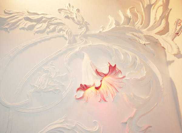 Объемные рисунки при помощи штукатурки можно в последствии разукрасить, тогда эффект трехмерного изображения раскроется во всей красе