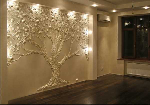 Объемные рисунки на стены кухни из гипса или штукатурки