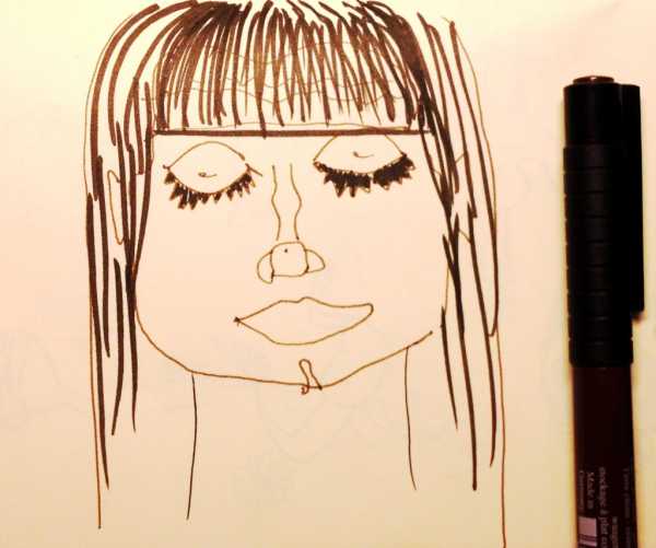 Можно заострить деревянную ручку кисточки и получить дополнительный удобный инструмент для рисования. Получается что-то среднее между пером и ручкой. Вот, что получилось у меня, когда я попробовала: