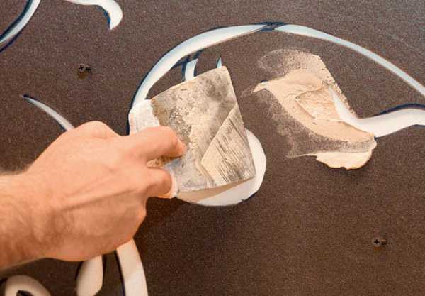- Можно поверх шпаклевки просто положить трафарет и по нему вырезать нужные элементы;