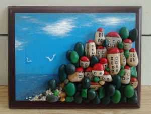 Для того чтобы сделать необычные картины из морской гальки, необходимо подобрать основу картины, и окрасить ее в необходимый цвет. В качестве основы можно использовать кусок дерева или фанеры. Затем на бумагу следует нанести эскиз будущего рисунка, и определить какого цвета камни понадобятся. Затем камни необходимо окрасить в необходимые цвета и после приклеить камни к основе при помощи клеевого пистолета. При желании можно немного поэкспериментировать и добавить в картину и другие материалы.