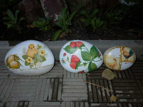 Очень интересно и необычно смотрятся поделки из камней средней величины, декорированные в «салфеточной технике» — технике декупаж. Для того чтобы сделать подобную поделку понадобиться:
