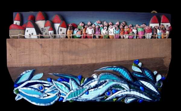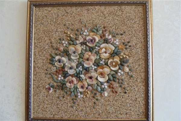 Картина из камней, морских ракушек и мозаики