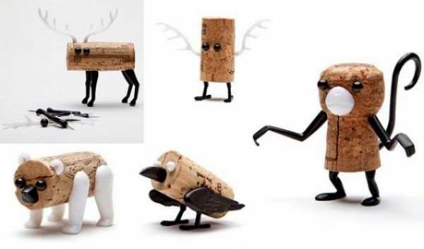 Например, из данных изделий можно создать разных животных — оленя, жирафа, собаку или сову. Для изготовления оленя необходимо из отрезанных кусков зубочисток сделать ноги, а затем украсить голову несколькими соединенными зубочистками, чтобы получились рога. Нарисованные вручную или приклеенные в виде бисера или бусинок глаза и носик сделают поделку похожей на настоящего оленя. При желании можно разукрасить пробку в разные цвета, добиваясь таким образом наибольший правдоподобности создаваемого изделия. Из 3-4 пробок можно изготовить собаку, кошку или муравья.