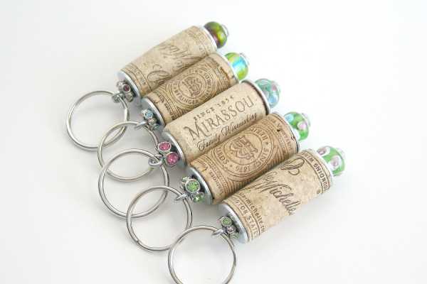 Изготовить брелоки или ключницы из пробок очень просто. Для создания таких деталей рекомендуется ввинчивать саморез с петлей на конце. Введя в пробку такой саморез, на кольцо с обратной стороны можно прикрепить ключ на кольце и даже украшения из бус и бисера. Если такой саморез насквозь пронзает брелок, с обратной стороны рекомендуется привинчивание гайки, под которую закрепляется декоративная лента с прикрепленными на ней украшениями. Для украшения созданного брелока рекомендуется раскрашивания каждой отдельной детали в разный рисунок.
