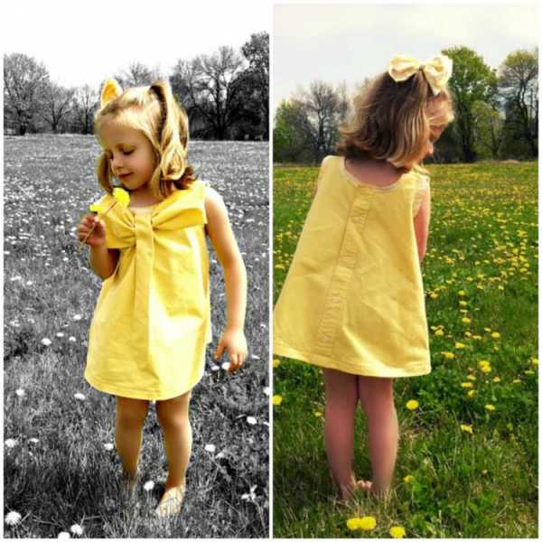 У вас наверняка найдется надоевшая майка. Отрезаете ее до нужной длины — это верхняя часть наряда. Затем пришиваете часть мужниной рубашки и дочка идет гулять в новом наряде.