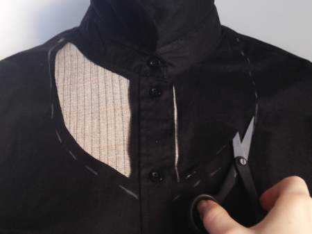 - У рубашки отрезать верхнюю часть по прямой линии до проймы.