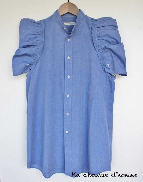 Экспериментировать с декором, перешивая мужскую рубашку в женскую, можно бесконечно. Этот кокетливый вариант мне понравился больше всего!