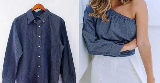Самое простое решение для переделки мужской рубашки — детская одежда, фартуки. Но мы хотим предложить вам действительно интересные идеи, благодаря которым можно легко превратить красивую мужскую рубашку в женский предмет одежды.