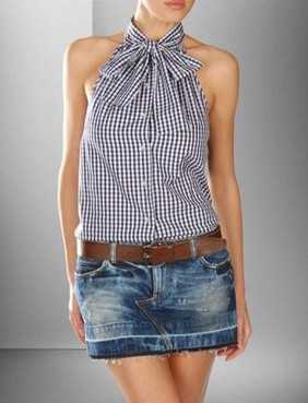 Из ненужной мужской рубашки можно сделать вот такой интересный сарафанчик, вернее короткую тунику-топ.