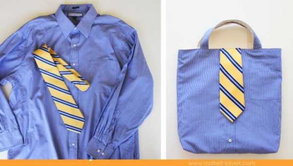 Легко превратить рубашку в оригинальную сумку. Дополнить ее можно даже галстуком