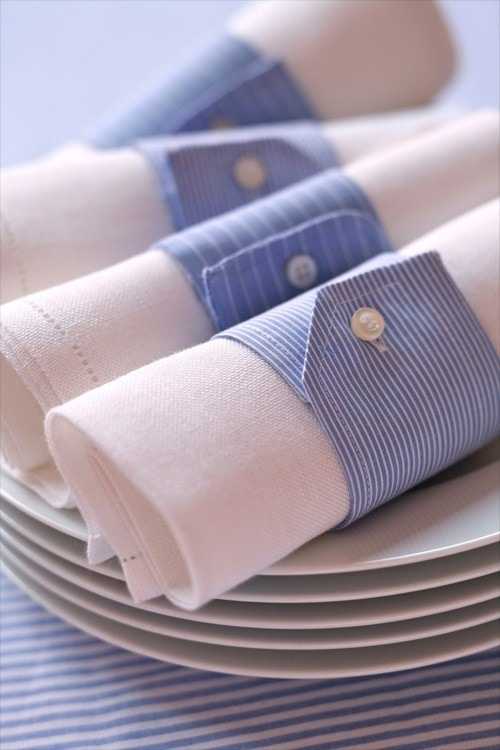 Чудесные кольца для столовых салфеток, сделанные из манжетов ненужных рубашек, станут стильной деталью сервировки и настоящей изюминкой праздничного стола.