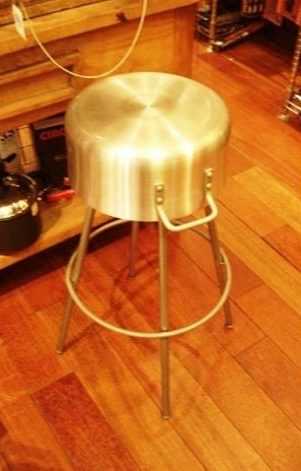 Из кастрюли большого диаметра выйдет великолепный барный стул. Для этого нужно только к перевёрнутой вверх дном кастрюле прикрепить ножки. Для этого подойдут надёжные трубы. Их можно приварить, если есть доступ к сварочному аппарату. А можно просто прикрутить к боковой поверхности каждую ножку в двух местах болтовыми соединениями. Придумать обивку и барный стул готов.