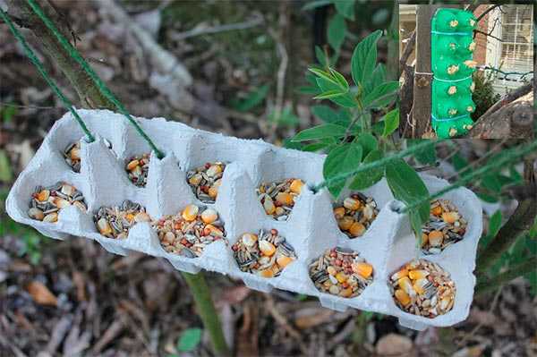 4. Хорошей поделкой из коробок для яиц будет кормушка для птиц. Вариантов, как сделать, огромное множество, о которых читайте здесь.