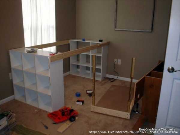 Идея стола — или подиума построенного на стеллажных полках.