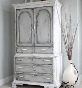 Стиль Прованс подразумевает искусственно состаренную мебель. Старый шкаф идеально подходит под это требование. Останется только сделать так, чтобы его потрёпанность временем выглядела аккуратно и мило, а не являлась отдельными ободранными пятнами.