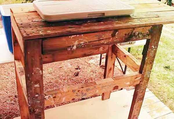 Из стенок шкафа можно сконструировать рабочий стол для детей. А с полок сделать закрытые ящички для стола. Затем аккуратно всё соединить и зачистить наждачной бумагой. Далее нанести несколько слоёв лака для дерева.