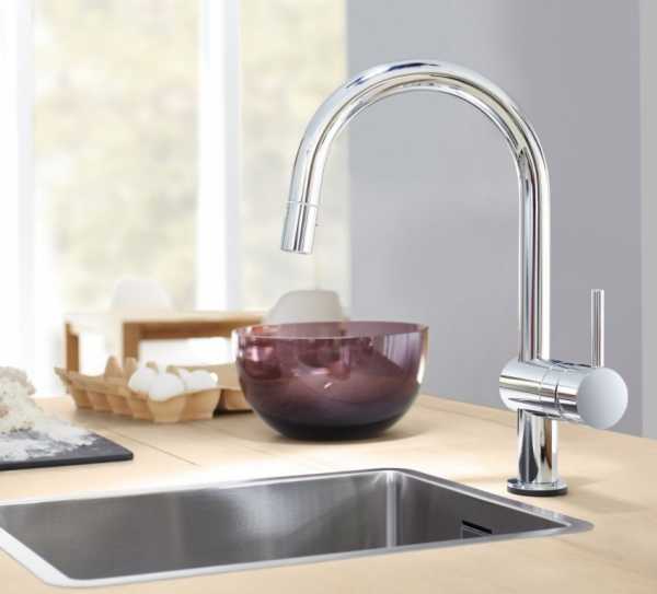 Длина гусака зависит от периметра мойки. Считается, что струя должна быть направлена в центральную часть основания раковины. Среди современных разработок популярностью пользуются конструкции с выдвижным носиком.