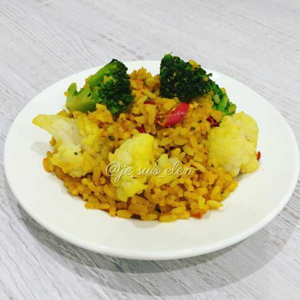 - Разбейте в рис с приправами и перцем сырое яйцо и быстро перемешайте. Когда рис станет рассыпчатым, добавьте в него цветную капусту и брокколи и протушите еще 5-7 минут.