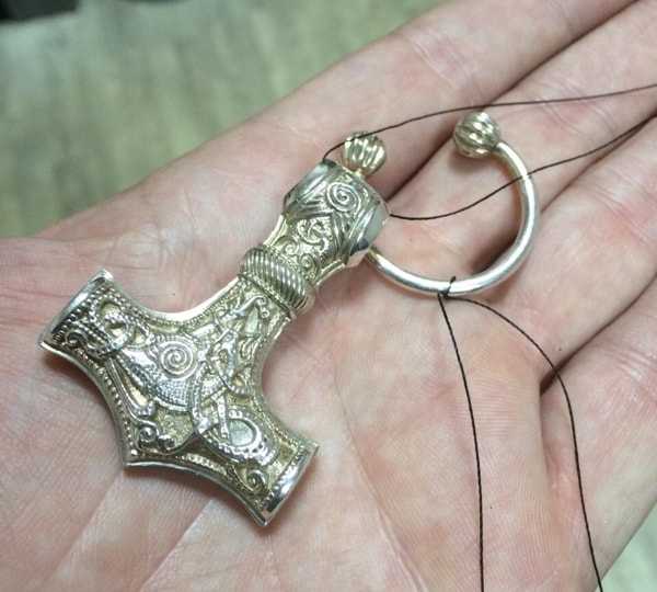 Мы предлагаем разделить этот процесс на несколько основных этапов. Руководствуясь этими правилами, вы сможете самостоятельно, без посторонней помощи, преобразить серебряное украшение. Мы опишем свой технологический процесс и, возможно, не все оборудование окажется у вас под рукой, однако мы постараемся предложить альтернативу. А теперь все по порядку. В качестве испытуемого изделия возьмем наиболее популярную модель из нашего ассортимента — Молот Тора амулет Мельнир, отлитый в серебре 925 пробы.