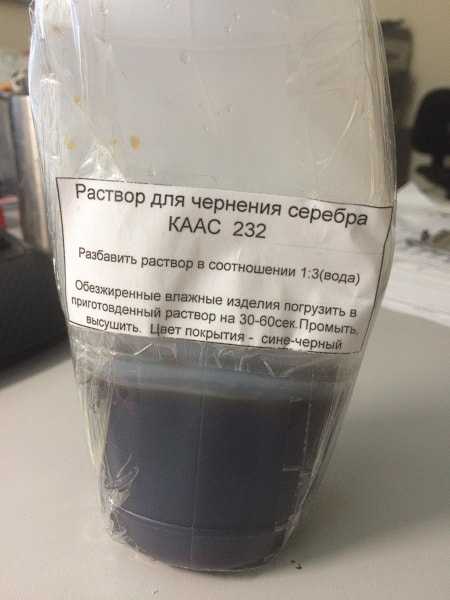 Серебрянное украшение после 60 секунд в составе для чернения.После извлечения изделия из состава, оставляем его на поверхности стола, после промываем от остатков состава под проточной водой и даем высохнуть в течение 30 минут.