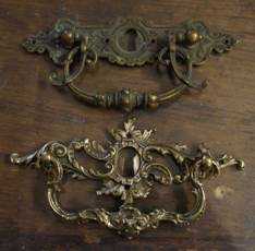 При реставрации антикварной мебели мы часто встречаемся с необходимостью восстановления утраченной бронзовой фурнитуры. Приходится изготавливать копии недостающих ручек, уключин или накладного бронзового декора по сохранившимся образцам. Новый декор слишком нарядный, блестящий и нарушает гармонию старинной мебели. Преодолеть блеск свежей бронзы возможно несколькими способами. Самый простой, ни чего не делать и бронза сама потемнеет уже через месяц или два. Второй распространённый способ вызвать натуральную патину на бронзе – покрыть её серо содержащим препаратом и немного нагреть.